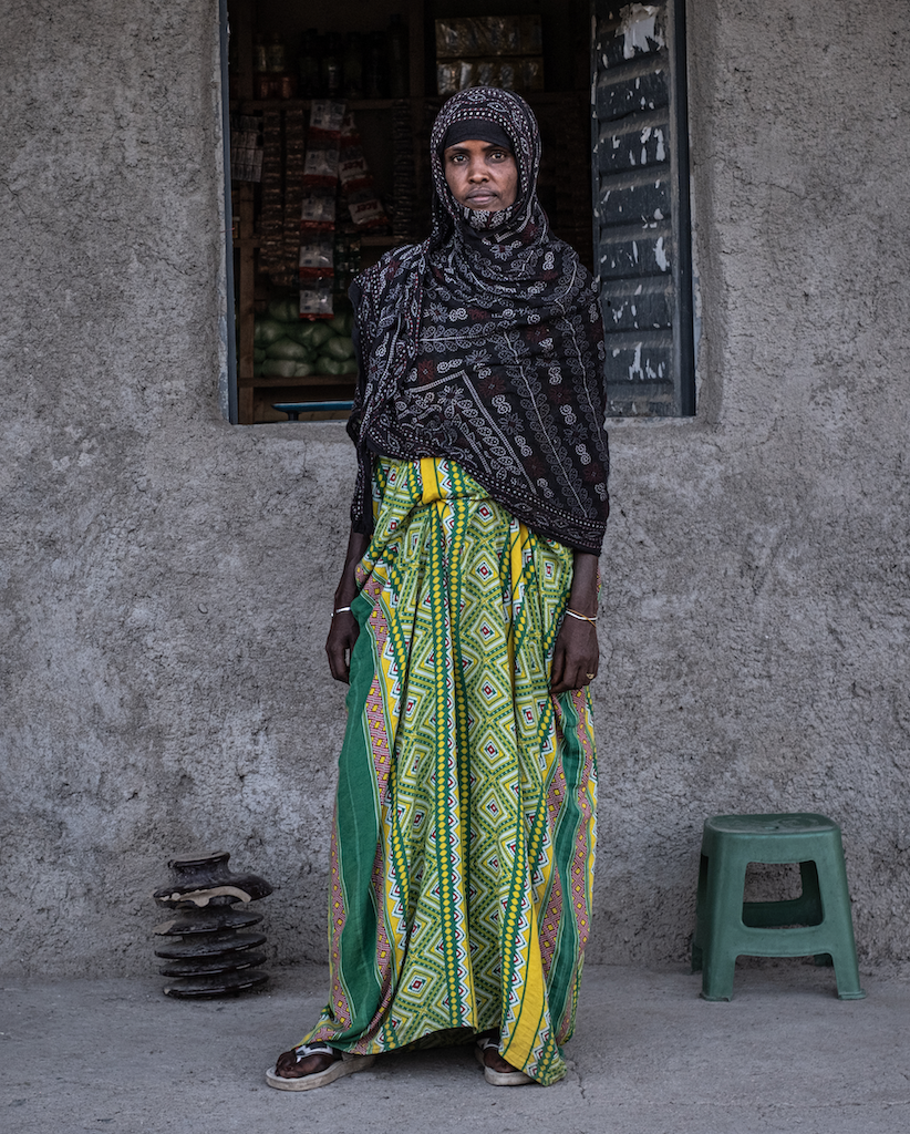 Fatuma Mohammed davanti al suo emporio. Foto di Marco Simoncelli